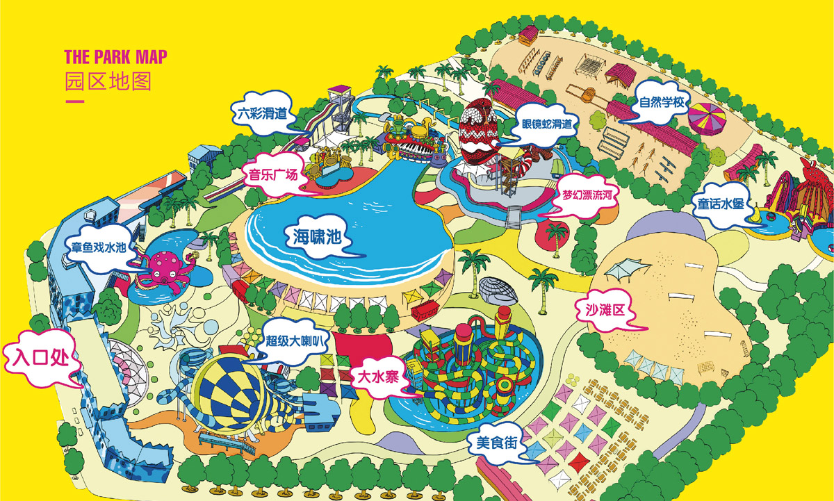 海右博納秉承著對品牌設計的熱情與信仰,對“水上樂園”進行全新的概念剖析與提煉,全面激發創新熱情,全力投入塑造奧悅水世界,前期市場調查中,團隊人員走訪全國各地的大型水上樂園進行市場調研,深入研究和分析消費群體的需求和感受,從品牌定位到品牌整體形象,保證獨特新穎,并遵循以人為本的原則,充分考慮游戲者的感官體驗,注重設計的情感投入,提升趣味性、挑戰性和審美情趣的情感化因素,留給游客足夠的想象空間,并通過綜合多元素的通感刺激,將游戲者帶入具體的情景環境中。