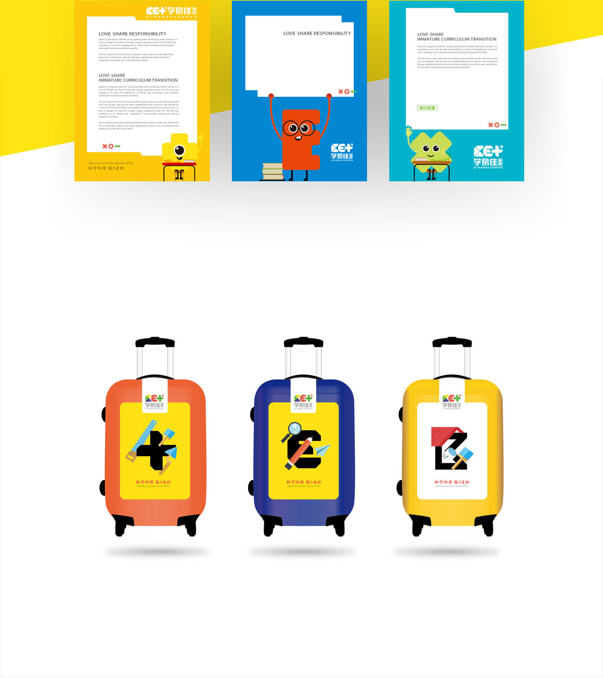 在品牌策略的基礎(chǔ)上,海右博納依據(jù)超級符號策略,為學(xué)易佳進(jìn)行了整體視覺形象升級,使其更符合行業(yè)領(lǐng)導(dǎo)者調(diào)性,也更符合幼小銜接教育目標(biāo)客群的喜好,同時(shí)降低品牌傳播成本。