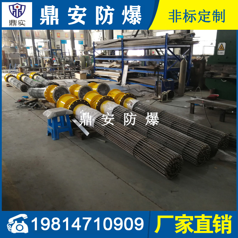 防爆法蘭式電加熱管按結構分大致可分為螺牙型和平板式法蘭型加熱器,常見的電壓:200V-220V-380V,功率按發熱根據發熱尺寸不同有:3KW-4.5KW-6KW-8KW-9KW-10KW-12KW-15KW-18KW-21KW等,通常由3-6-9支U型雙頭加熱管通過TIG氬弧焊接于法蘭組合而成。常作為鍋爐加熱器、槽體加熱器、模溫機加熱器等使用,廣泛運用于電子、塑膠、化工、環境工程的槽體-罐體-設備的加熱。螺牙型法蘭加熱器,常見的安裝螺牙(絲牙)尺寸有:1寸-1.5寸(M47*2.5)-2寸(M58*2.5)管螺牙;平板式法蘭型加熱器,常見的安裝法蘭標準有日標和國標兩種,大小有:DN32-DN40-DN50-DN65-DN80-DN100-DN125-DN150-DN200-DN250-DN350-DN400-DN450等,如日標JIS150 法蘭加熱器常見的壓力有6kg-10kg-16kg-25kg;