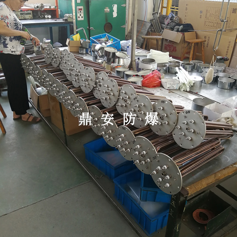 江蘇鼎安防爆電氣有限公司是一家生產和銷售高品質電加熱設備的民營企業。擁有成套完善的生產設備和一支技術力量雄厚的研發及生產隊伍。主要生產環保節能的PTC電加熱器、防爆導熱油爐電加熱器、防爆管道加熱器、防爆風道加熱器、單頭加熱管、雙頭加熱管、翅片加熱管、防爆法蘭加熱管等。并為國內多家大型科研機構及出口企業配套生產各種電加熱設備。年生產能力超3000臺套。